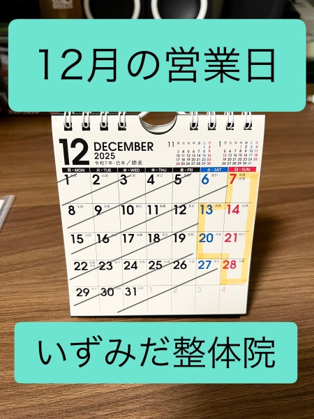 12月の営業日は7(日)13(土)14(日)20(土)21(日)28(日)です。